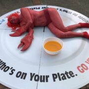 An activist braves the cold, stripping down to expose the horrors inflicted on sea life! This as protests erupt at a popular seafood festival in Portland, Oregon! Demonstrators ask festival goers to: “Try to relate to WHO is on your plate.” Contributor Dani Rukin reports for #JaneUnChained. Festival organizers are invited on any time to respond.