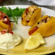 Genesis’ Vegan Crabless Cake Stuffed Sweet Peppers