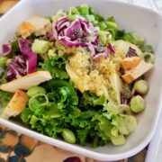 Mix all of the ingredients in the salad and start massaging the kale with hands until the kale leaves are soft.