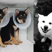 These two beautiful puppies, Lennox and Angel, were just rescued from a high-kill shelter in South Korea by our volunteer partners. Dog meat farmers and members of the public regularly go to dog shelters and take the Jindos to raise them for slaughter