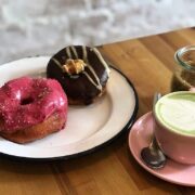 1 peanut butter chocolate and 1 hibiscus donut please. Wash it down with a macha latte with oat milk. Yum!