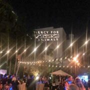 The Mercy For Animals sign shines above this star-studded night!