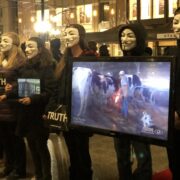 Activists dedicate hours to holding this screens for bystanders to see the truth.