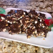 INGREDIENTS:1 cup creamy peanut butter1 cup VEGAN mini marshmallow (Trader Joe’s brand is suggested)1 cup Spanish peanuts16 ozs (usually takes 4 bars) VEGAN Baker’s Chocolate BarsLine a 13×9 pan with wax paper and spread vegan marshmallows out evenly on bottom of panMelt vegan chocolate according to package directions in the container it comes in.When fully melted, stir in peanut butter, then mix in spanish peanutsPour mixture into pan on top of marshmallows and spread evenly with spoon so you can’t see whites of marshmallowsCool in fridge for 20-25 minutes, take out and cut into squares