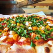 Shelly and Julie pose with The California Sunrise Pizza! We’re so glad Shelly convinced Julie to go vegan!