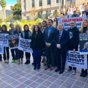 Judie Mancuso of SCIL stands before State Senator Ben Hueso and L.A. City Counsel Member Paul Koretz to launch the Circus Cruelty Prevention Act legislation Photo by: Patrizia Barretto
