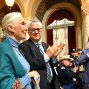 Jane Goodall receiving her award alongside Councilmen Paul Koretz, Councilmen Mitch O’Farrell, and Steven Wise of NHRP.