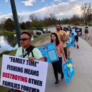Colorado Animal Save activists speaking out against the abuse of fishes at popular fishing pond. “Family time” fishing means destroying other families. Fish feel pain, just like us! Dani Rukin in Colorado reporting for #JaneUnChained News.