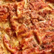 2/3 cup plain soy milk1/4 cup Nutritional Yeast1/2 tablespoon Miso paste1/2 tsp garlic powder1/2 tsp sea salt1/2 tsp dried basil1/2 tsp dried oregano1 Beyond “Meat Patty,” defrosted1/2 8 oz ball of “Miyoko’s” fresh mozzarella1 package “Trader Joe’s” Mozzarella shredsSauces:1 15 oz can tomato paste1 24 oz can pasta sauce“No Boil” Lasagna noodlesTopping:Italian seasoning“Just Veggie” vegan parmesan cheeseRecipe: