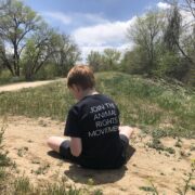 Denver Baby Animal Save activists perform prayer and chanting ritual as baby goats cry out. Bearing witness to baby lambs and goats at slaughterhouse adjacent to a bike path outside Denver. Dani Rukin in Colorado reporting for #JaneUnChained News. The Save Movement.