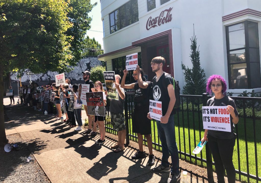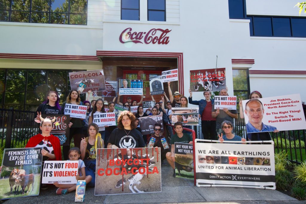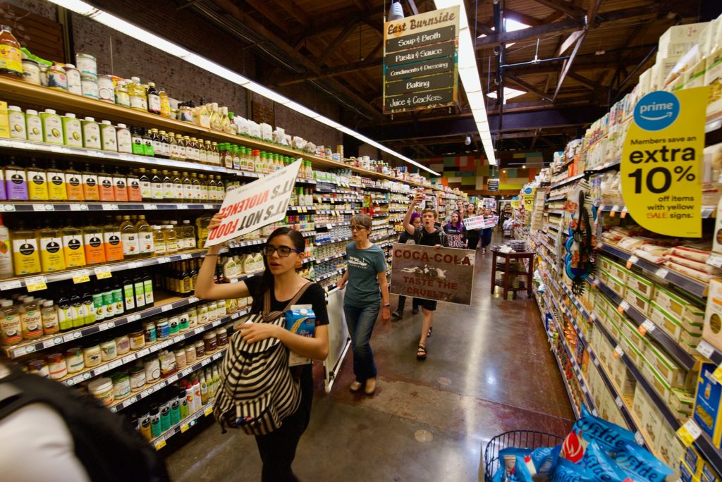 Protestors deliver speak-outs and chants, followed by a march through a natural supermarket, announcing that all dairy is scary and to switch to plant-based milks.