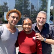 LT to RT: Genelle Palacio Butler, Jeff Harris, Genesis Butler at Plant Power Fast Food In Long Beach, CA