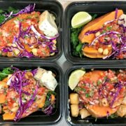 Today, Sandra is making 4 of her favorite meals to eat for lunch! The base of her meal consists of greens, sweet potatoes, tofu, and garbanzo beans. It’s very colorful making it aesthetically appealing and it’s full of flavor thanks to the pico de gallo salsa she makes in her food processor. The optional chunks of Miyoko’s Double Cream Chive Cheese also add a tasty pop of flavor. This is definitely a meal any person who is health conscious but still wants food that tastes delicious, could eat all week long. Sandra suggests adding ingredients depending on if you are going to eat your meal room temperature or heat them up. Her example is not to use romaine lettuce if you are heating up your meal. Try prepping your own at home with Sandra’s recipe below. Save yourself time, money, and “eat from the rainbow” all week!