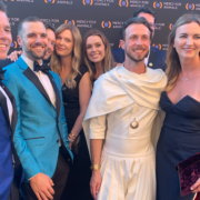 The red carpet, which was actually blue, was bustling with activity as stars paused to tell reporters how much they love the work of Mercy for Animals!