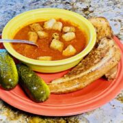 The perfect vegan grilled cheese sandwich and tomato soup on today’s #SaturdaySnackdown with Erin Riley-Carrasco, PETA (People for the Ethical Treatment of Animals)’s Sexiest Vegan Over 50. Believe it or not, it’s sometimes quite difficult to find tomato soup that is NOT vegan! Many times it’s a bisque so it contains cream. This delicious combo is perfect comfort food for the Fall Season and Erin shares her favorite products to achieve this tasty meal. Enjoy! #janeunchained #comfortfood #vegangrilledcherse