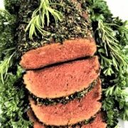 Cool the roast for 15-20 minutes before slicing. Serve with a drizzle of the glaze and side of creamed horseradish. Goes great with vegan mashed potatoes or roasted vegetables. Leftovers can be sliced and used to make sandwiches.
