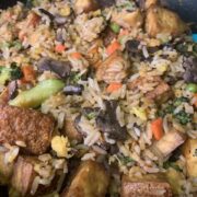 Wess showing of the vegan fried rice.
