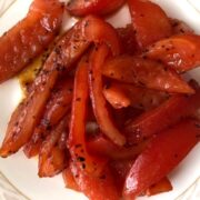 Vegan sushi can be an economical dish to prepare, beautiful when plated, and looks like it took hours to prepare when it really is very simple to make. Chef Linda showed us how to make Portobello Unagi (“Eel”), Tomato “Tuna”, and of course the Sriracha Mayo for your dipping pleasure. Her sushi turned out georgous, and so can yours. I am posting the recipe below so you too can give it a try. The main ingredients are tomatoes and portebello mushroom, and look how nice it all turned out.