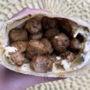 Shawarma is traditionally meat originally made from Lamb, but Sara has totally veganized it and her community loves it. She uses soy curls as the base for the “meat” which has the perfect texture for this meal, and she adds a whole lotta other delicious ingredients and spices to give you the flavor you expect when eating Shawarma. Once you stuff your pita bread with this vegan meat, you won’t be able to tell the difference from the traditional version. And it is far healthier for you, and contains zero cruelty! I hope you will give it a try.