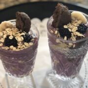 If I am offered a healthy dessert for lunch, delicious and nutritious, I am pretty sure I would take the offer. Chia Parfait and Pudding are so easy to make and delicious! Chia seeds are high in protein, fiber, and omega-3 fatty acids which are excellent for brain and heart health, not to mention anti-inflammatory. And berries are so full of antioxidants, you’ll want to consume them every day! These recipes are a delicious way to do just that! Using frozen bananas provides a surprisingly creamy texture to your parfait. Easy, low-fat, and delicious! Who could ask for more? Don’t forget to include Tracy’s Buckwheat Cinnamon Crunch Granola and either Mighty Mocha or Double Chocolate Cookies for a really amazing treat! Yummmmm!