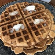 They freeze very nicely and will last for up to 3 months. Pop the frozen or chilled waffles in a toaster until they’re warmed