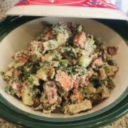 Moroccan Salad is an exotic, flavorful dish that is too easy to make to pass up trying. It is a perfect dish for Spring or Summer gatherings, vegan BBQs, or picnics, so this recipe comes at the perfect time since the weather is starting to warm. It is full of nutrients and health, a 100% whole-food plant-based meal. Let’s get chopping and make this Moroccan slice of heaven.